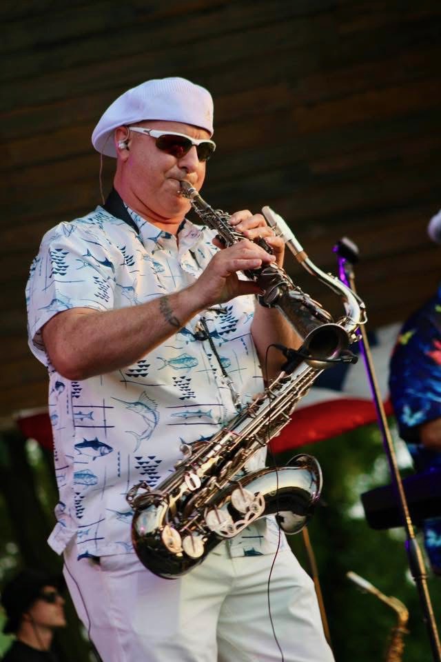 Roger is currently a member of the band, Suit & Mai Tai, and adds Tenor, Alto, Soprano saxophones, as well as percussion and backing vocals to their rockin’ sound!